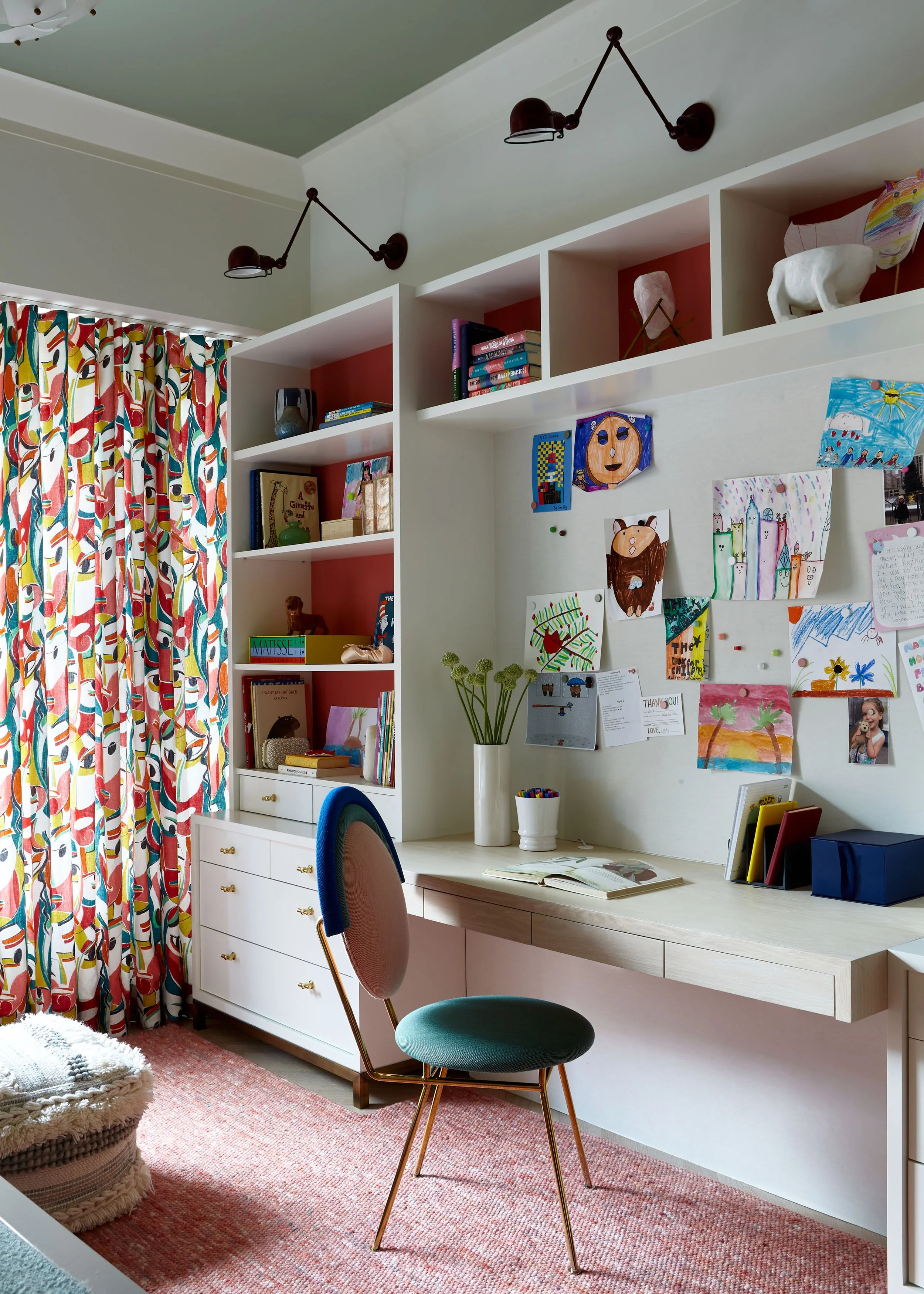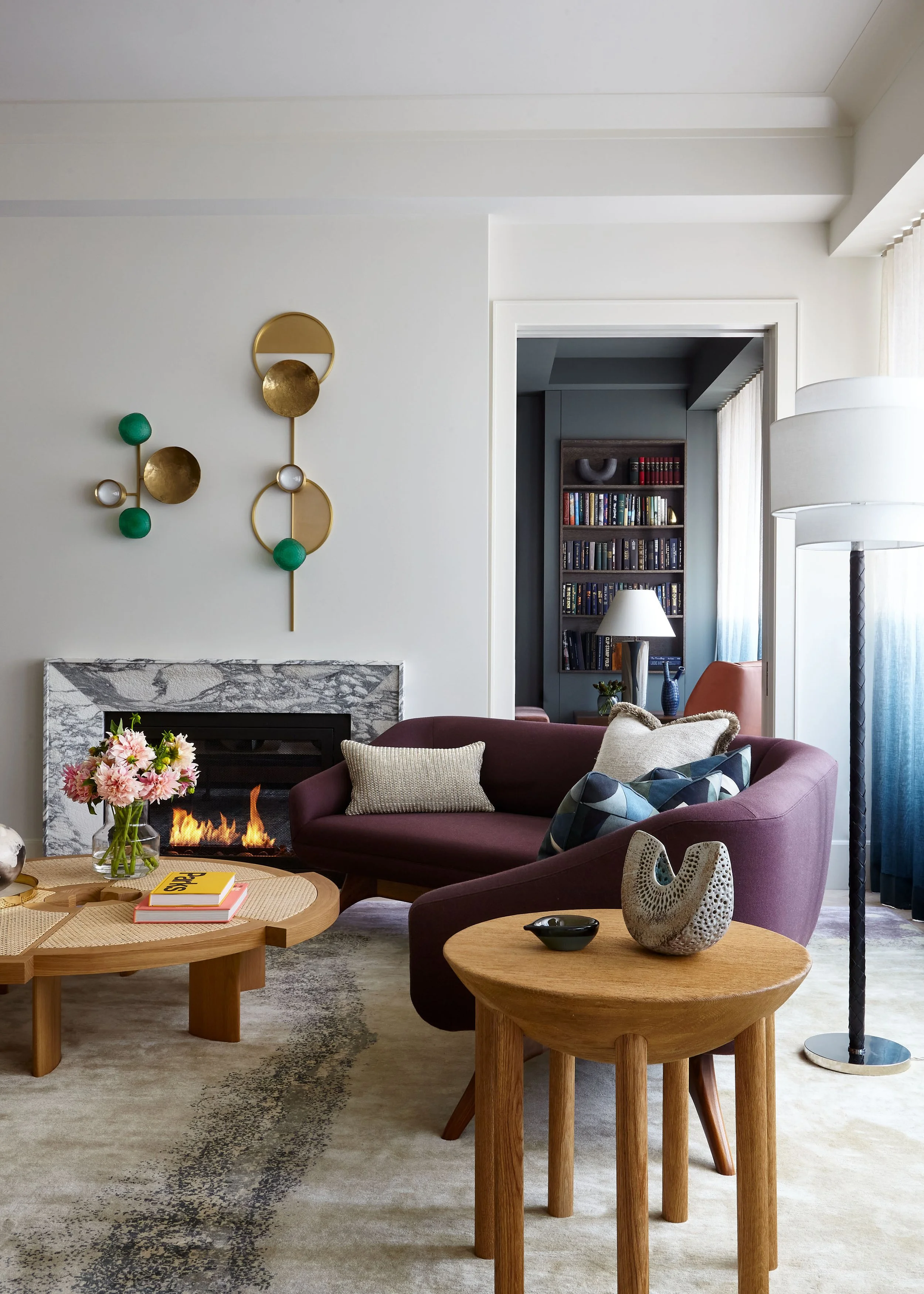 Color was key for this expansive condo. Home to a family with two young children who had lived the monastic rigor of white on white on white, they sought a brighter palette for their newly acquired home.