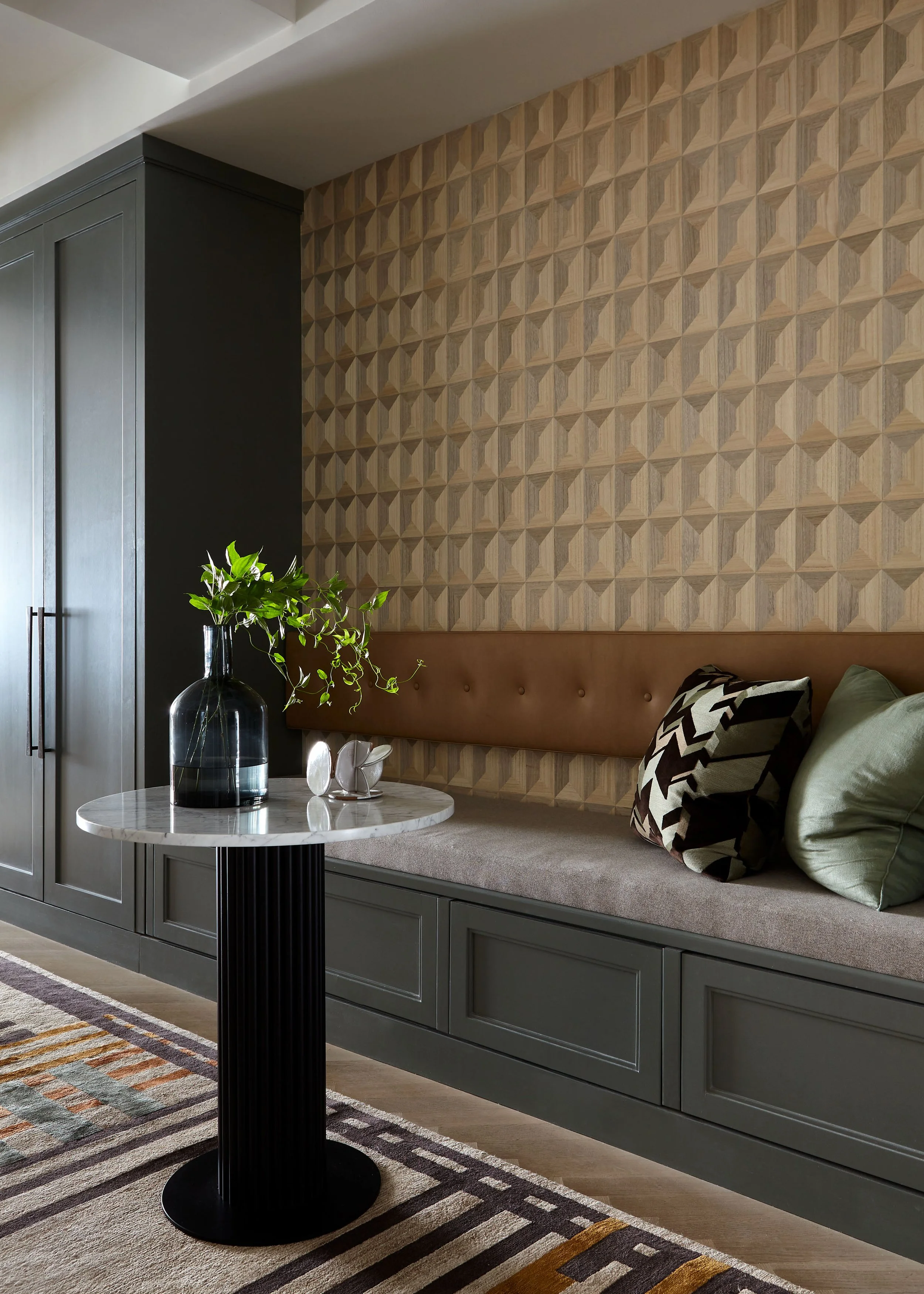 The condo’s generous rooms—inherited from the building’s former life as a parking garage—needed little work architecturally. Instead, the focus was on furnishings, textures, and finishes in an array of hues. This being a Dumais project, of course, the finished product wasn’t a maximalist explosion, but a rich jewel box wrapped in a clean, white envelope.